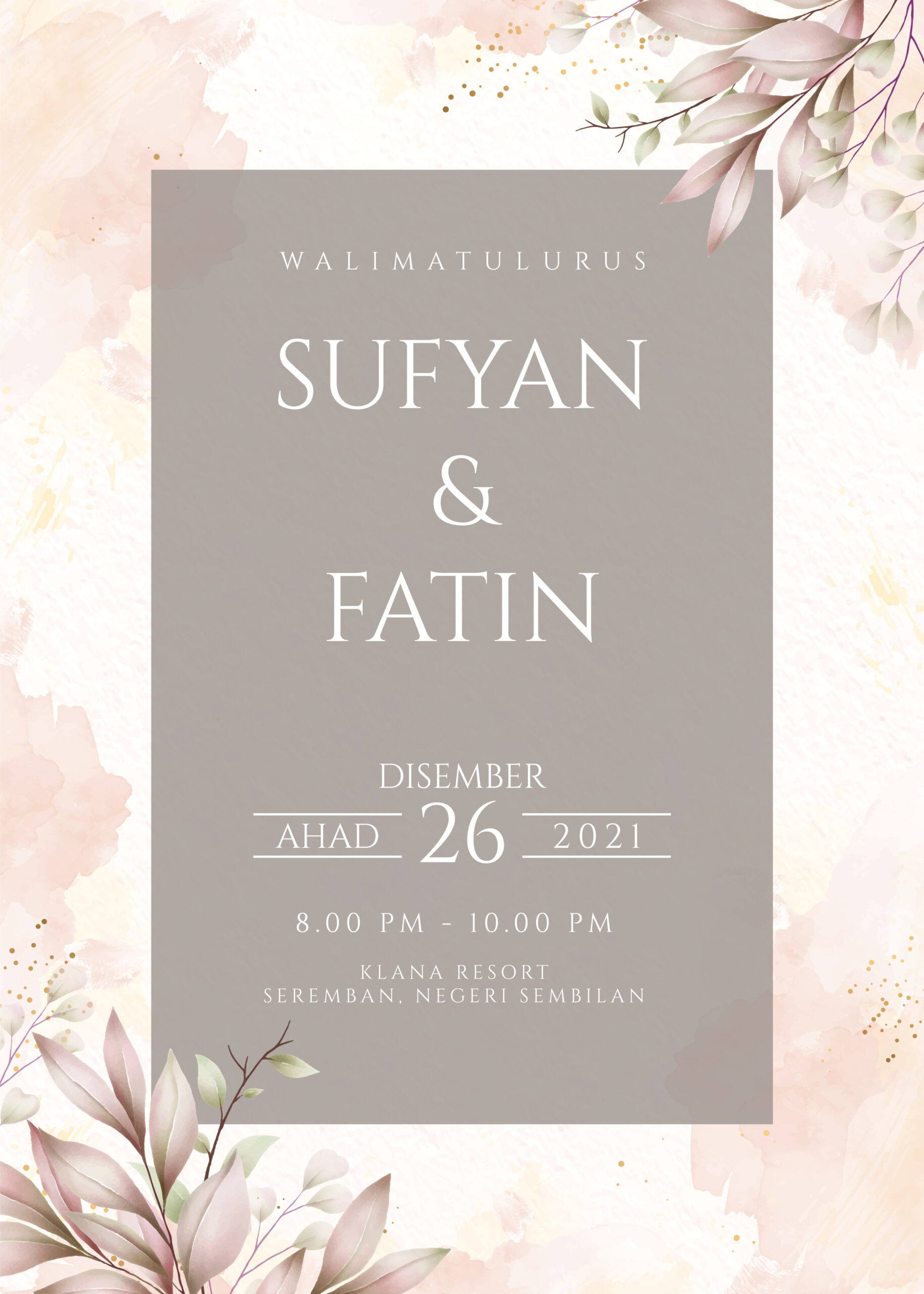 dengan berbesar hati dan sukacitanya mempersilakan Dato’/ Datin/ Tuan/ Puan/ Encik/ Cik ke majlis perkahwinan Putera dan Puteri bongsu kami